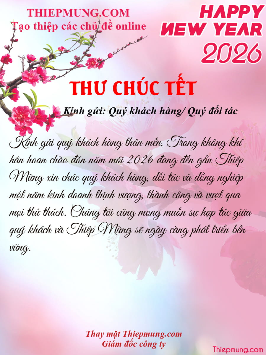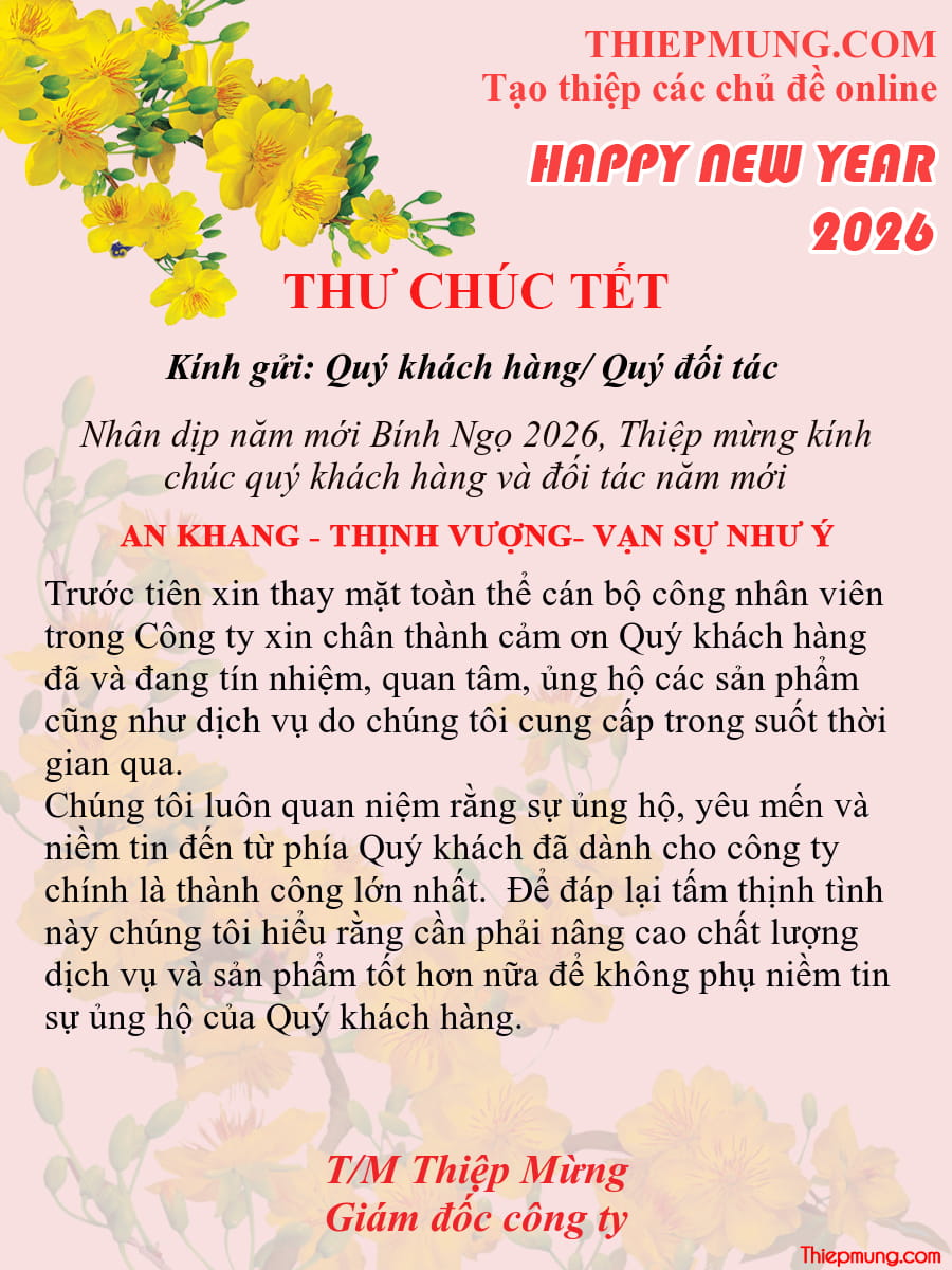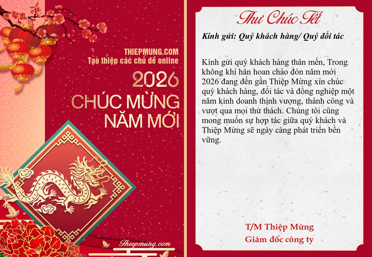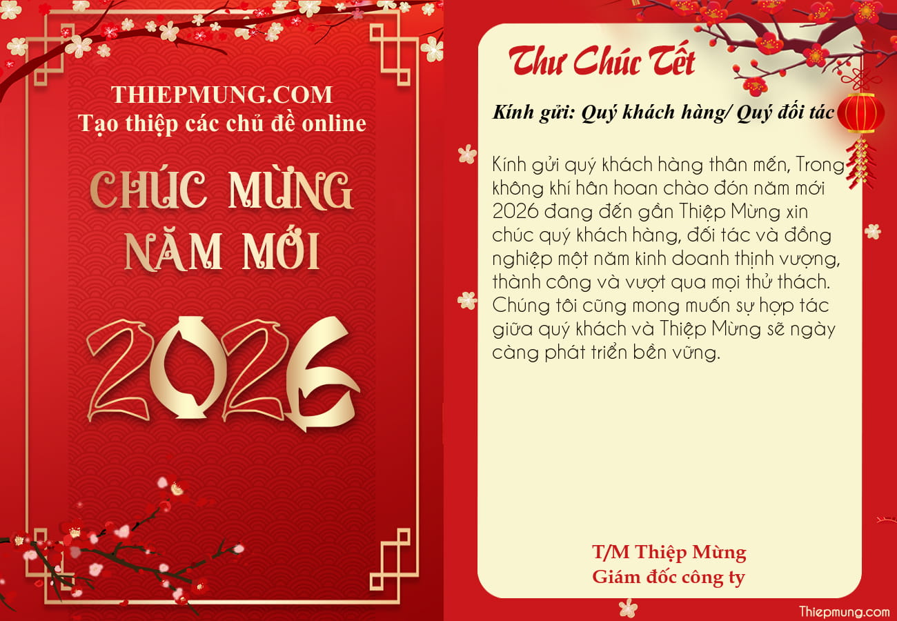 Mỗi tấm thư chúc tết, chúc mừng năm mới 2026 là việc làm cần thiết và hữu ích mỗi dịp năm mới về. Hãy cùng tham khảo những mẫu thư chúc tết ấn tượng được chúng tôi tham khảo từ Thiệp Mừng - Trang tạo thiệp và hình ảnh chúc Tết 2026 đẹp nhất này sẽ giúp cho mối quan hệ làm ăn và giữa các đối tác ngày một khăng khít.
