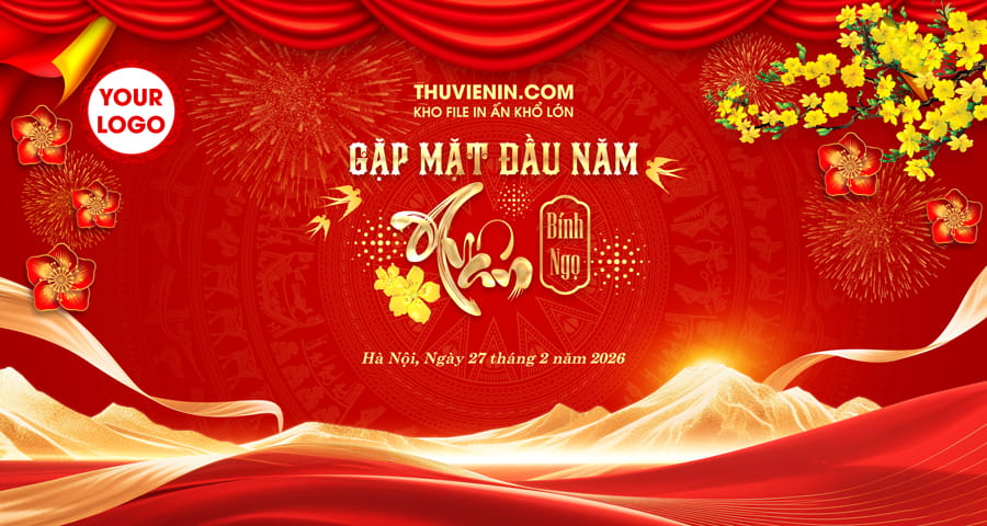 Các bạn tham khảo các mẫu backdrop Tết Nguyên Đán Bính Ngọ 2026 trên Thuvienin.com nhé