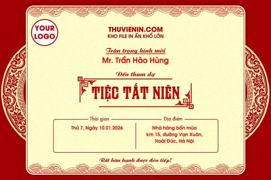 File PSD mẫu thiệp mời tiệc tất niên phong cách truyền thống sang trọng TV317460