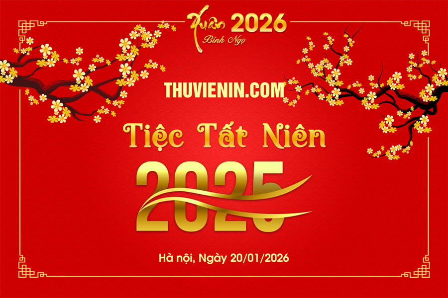 Mẫu file PSD thiết kế backdop Tiệc tất niên hoa mai vàng nền đỏ mang đâm không khí Tết cổ truyền dân tộc.