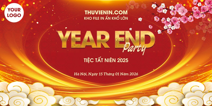 Mẫu file PSD thiết kế backdrop Year End party chuyên nghiệp mang đạm không khí Tết.