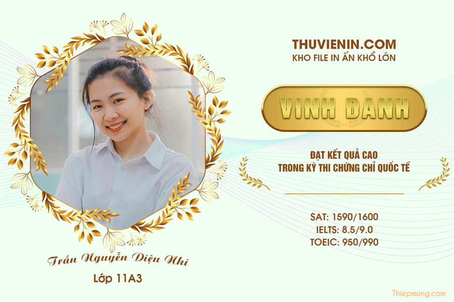Khung vinh danh học sinh đạt thành tích cao với thiết kế sang trọng, nổi bật hình ảnh cá nhân. Mẫu khung phù hợp để khen thưởng, tuyên dương học sinh xuất sắc trong các kỳ thi, giúp lưu giữ dấu ấn thành công và truyền cảm hứng học tập.