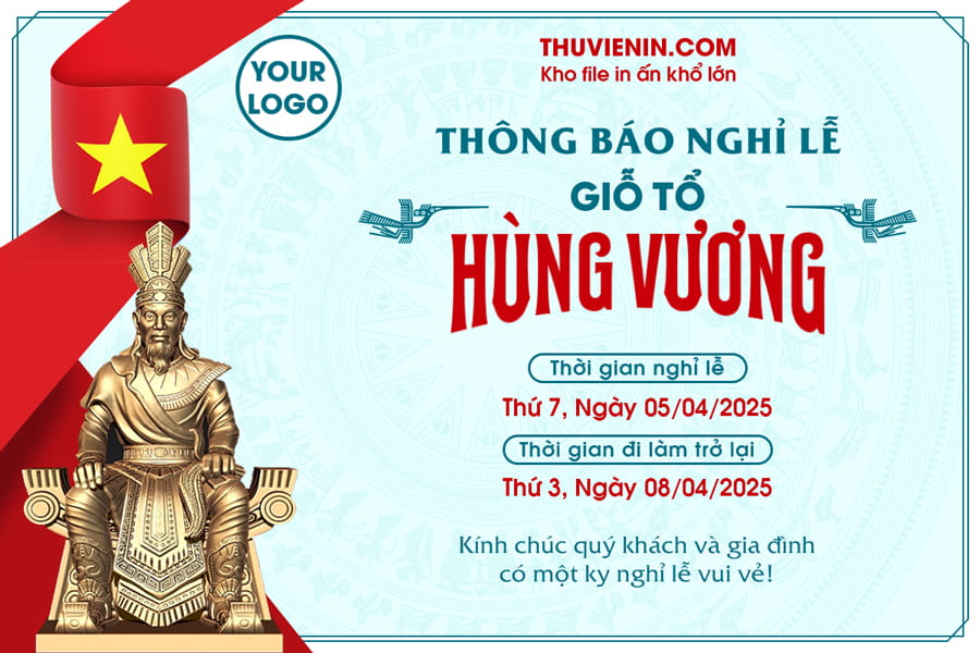 Mẫu file PSD thiết kế thông báo lịch nghỉ lễ Giỗ Tổ Hùng Vương 10/3 âm lịch sang trọng và chuyên nghiệp. Các bạn có thể dễ dàng chỉnh sửa theo sở thích của mình.