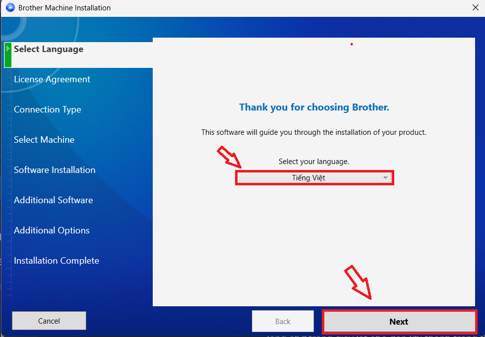 Lựa chọn ngôn ngữ: Khi cửa sổ cài đặt hiện ra, bạn tìm và chọn ngôn ngữ Vietnamese (hoặc English tùy nhu cầu) rồi nhấn OK.
