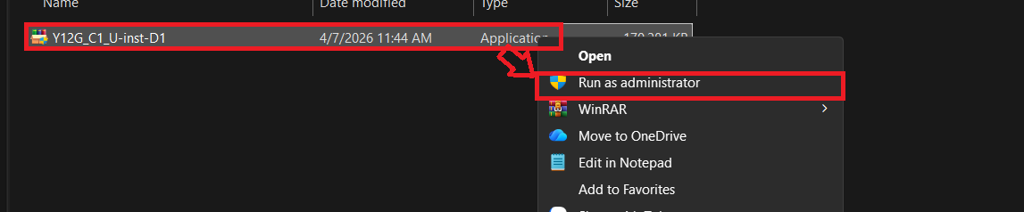 Khởi chạy file cài đặt: Tìm đến tệp tin đã tải về, nhấn chuột phải và chọn Run as administrator để bắt đầu.
