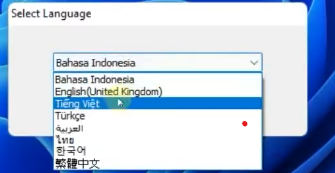 Lựa chọn ngôn ngữ: Khi cửa sổ ngôn ngữ xuất hiện, bạn chọn Vietnamese (Tiếng Việt) hoặc English tùy theo thói quen sử dụng, sau đó nhấn OK.