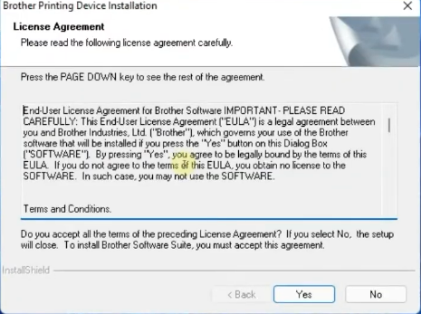 Chấp nhận điều khoản: Giao diện cài đặt hiện ra, bạn nhấn Yes để đồng ý với các thỏa thuận bản quyền của nhà sản xuất.