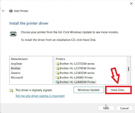 Trong cửa sổ chọn driver, nhấn vào nút Have Disk....