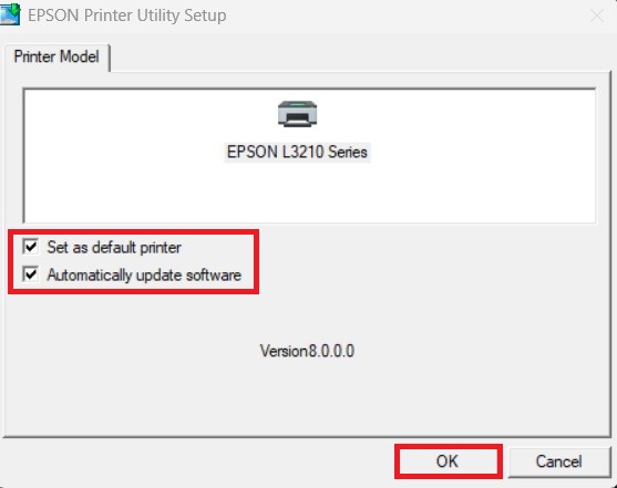 Khi cửa sổ hiện ra, chọn biểu tượng máy in. Đảm bảo đã tích vào ô Set as default printer để chọn đây làm máy in chính. Nhấn OK.