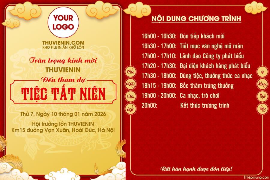 Mẫu file PSD thiết kế thiệp mời Tiệc Tất Niên mang đậm không khí Tết TV317466