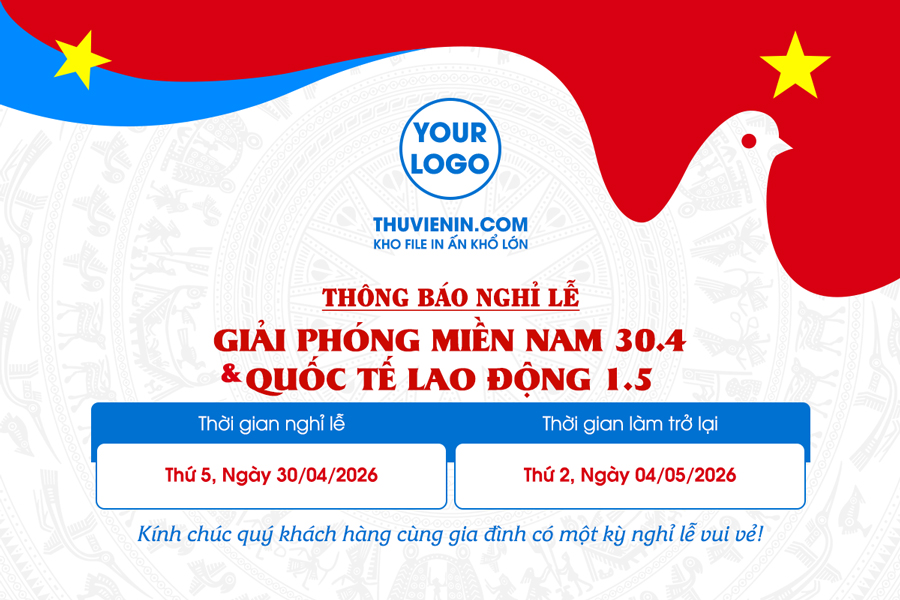 Mẫu file PSD thiết kế thông báo nghỉ lễ 30/4 – 1/5 trang trọng TV317488