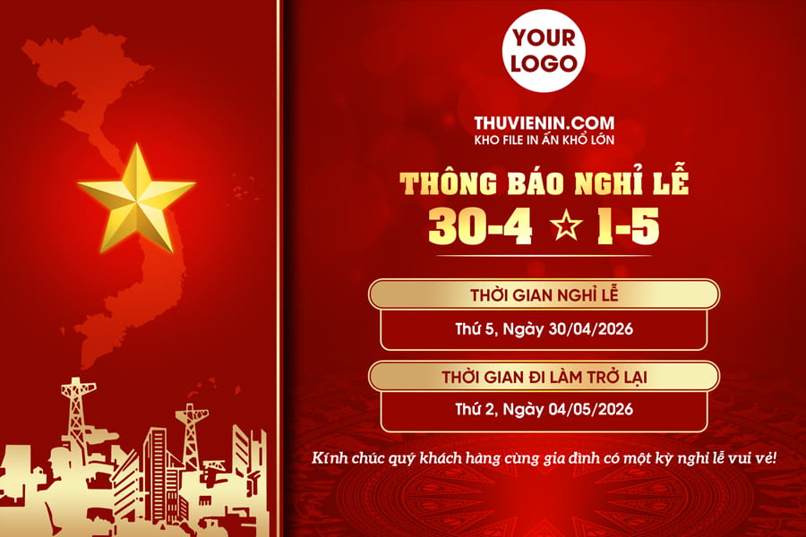 Mẫu file PSD thông báo lịch nghỉ lễ 30/4 và 1/5 trang trọng, chuyên nghiệp dễ dàng chỉnh sửa