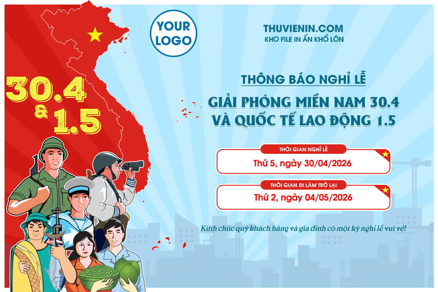 Mẫu file PSD thông báo lịch nghỉ lễ giải phóng miền nam 30/4 và quốc tế lao động 1/5 TV316415