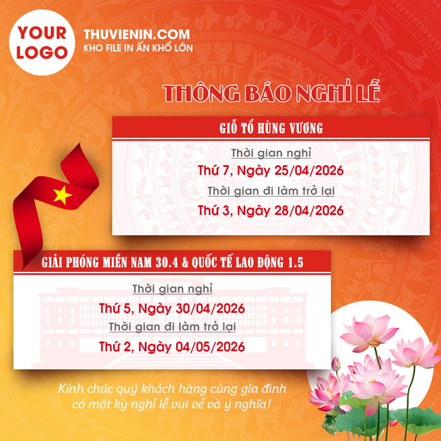 PSD thiết kế thông báo nghỉ lễ kết hợp Giỗ Tổ Hùng Vương, 30/4 và 1/5